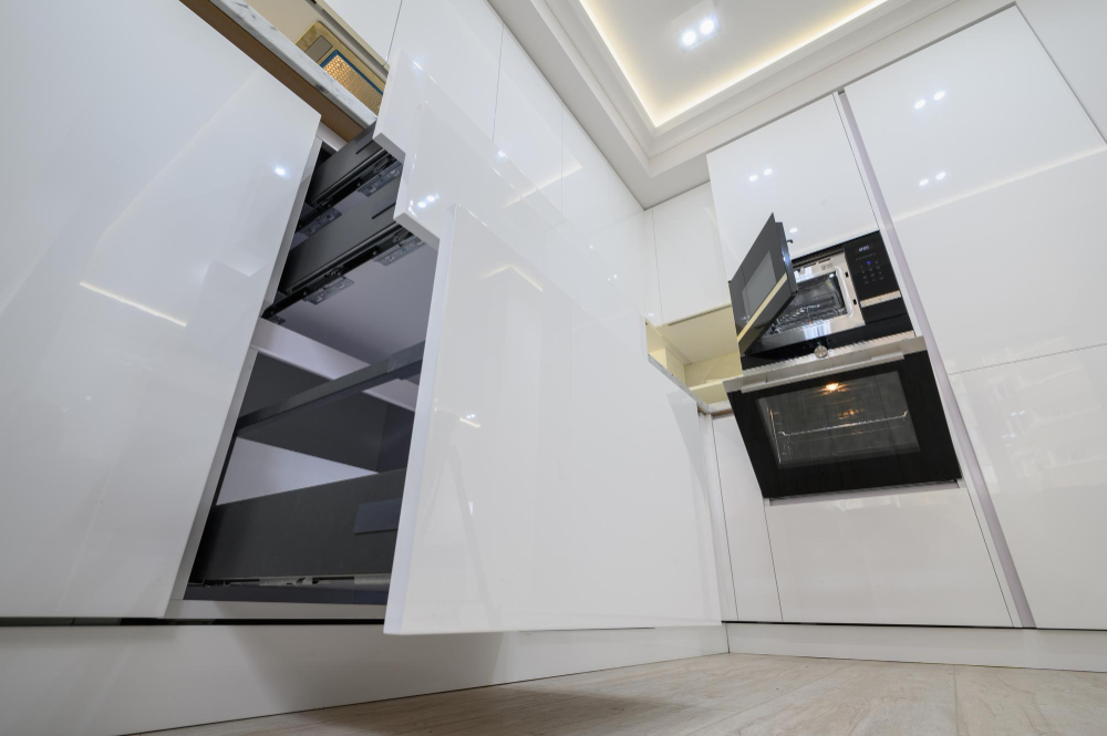 In tight spaces, this alone can completely change how the room feels. This effect is often highlighted in The Shiny Secret to a Contemporary Home: High Gloss Luxe Cabinets.