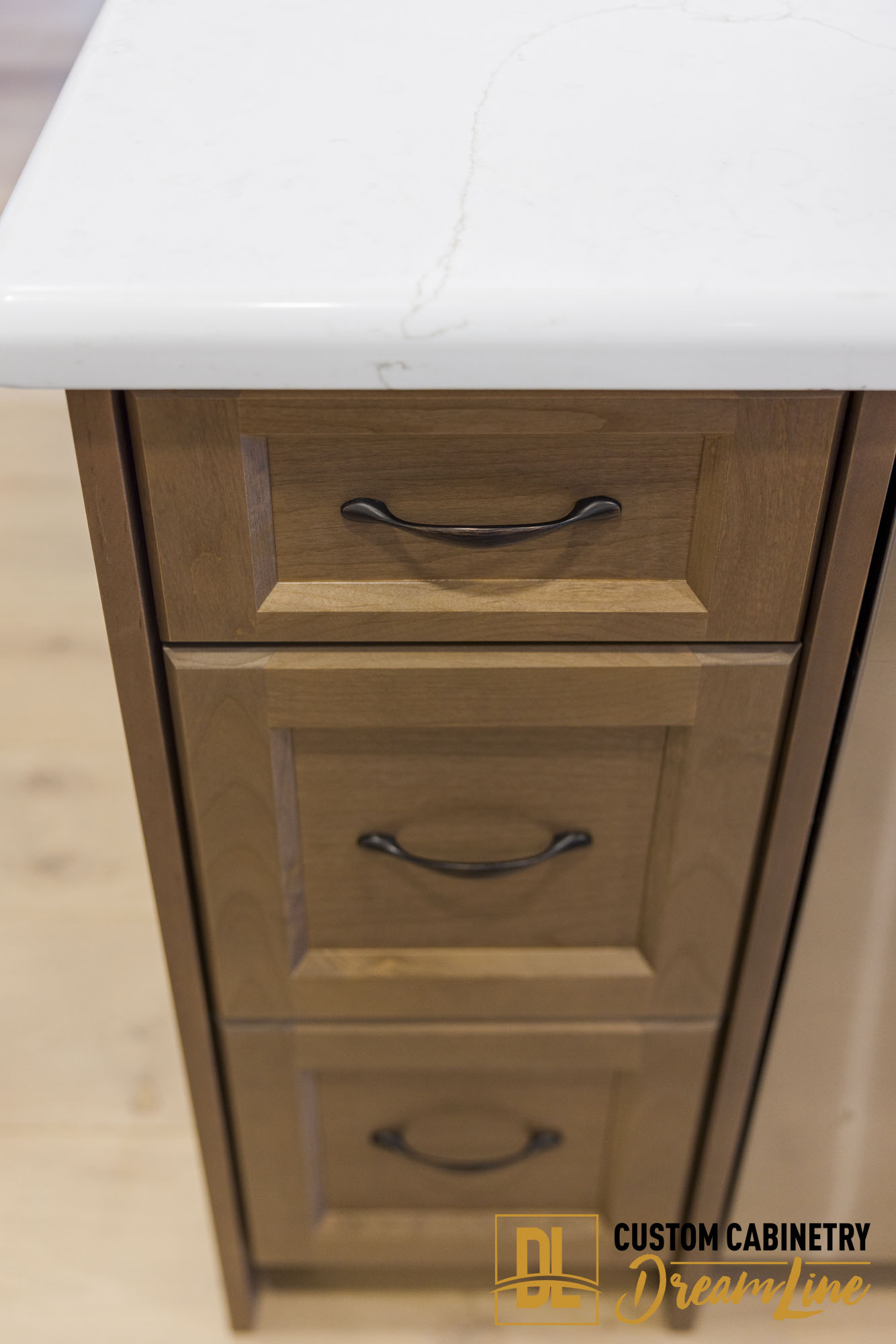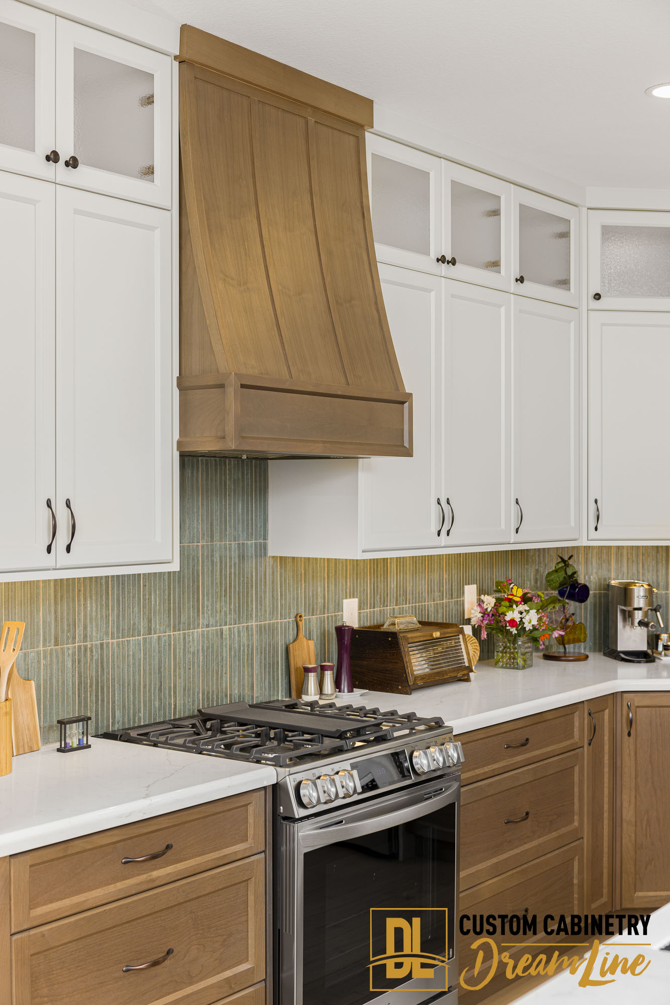 At the heart of the design is DreamLine’s Custom Cabinetry Paint Finish System, which combines two complementary tones for depth and character. The perimeter cabinetry was finished in White Dove, a timeless painted white that brings clarity and brightness to the room.