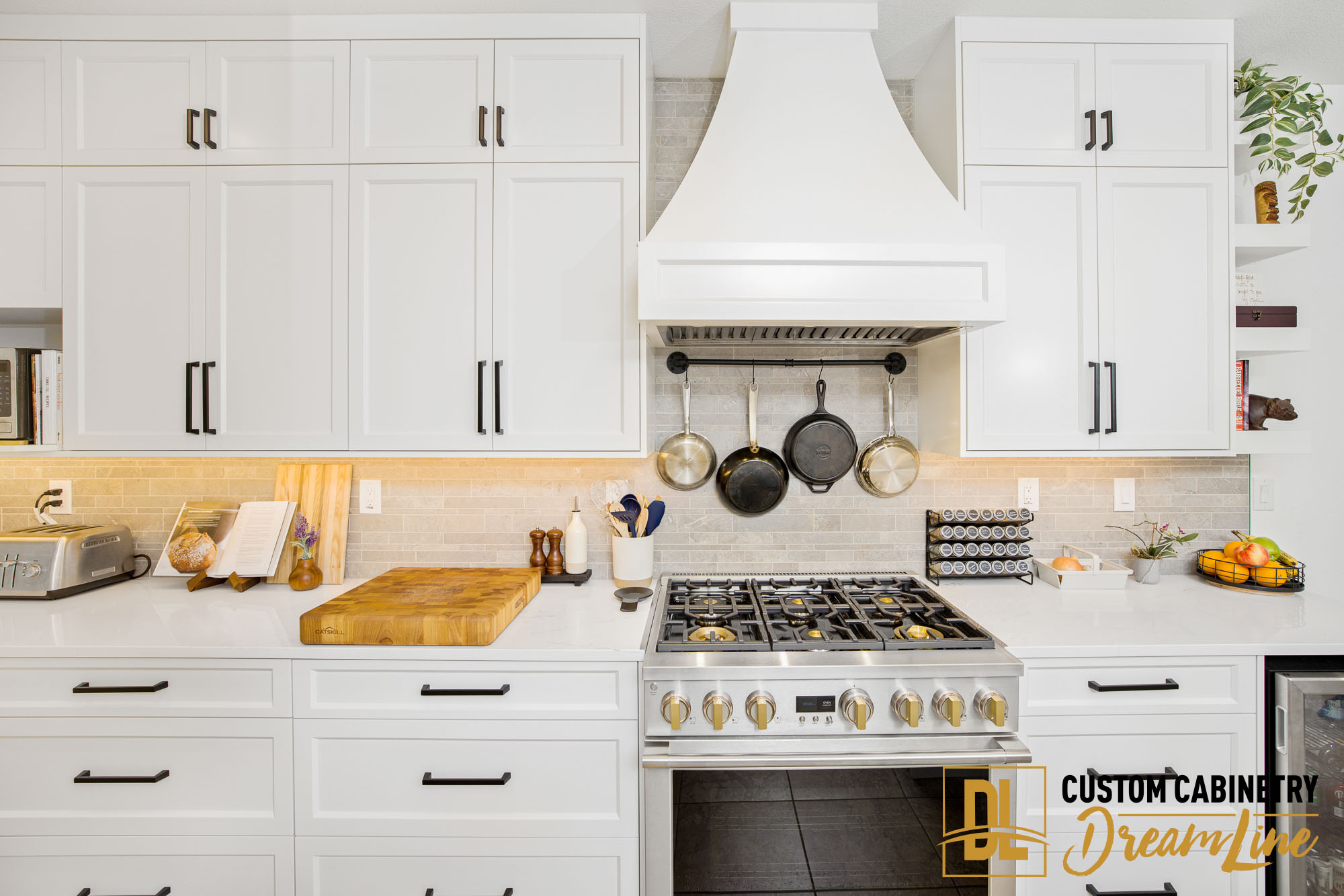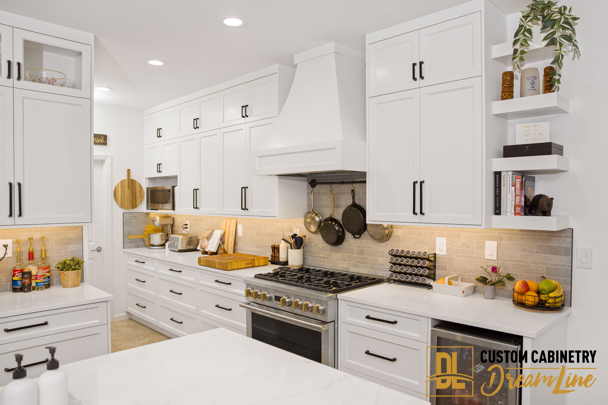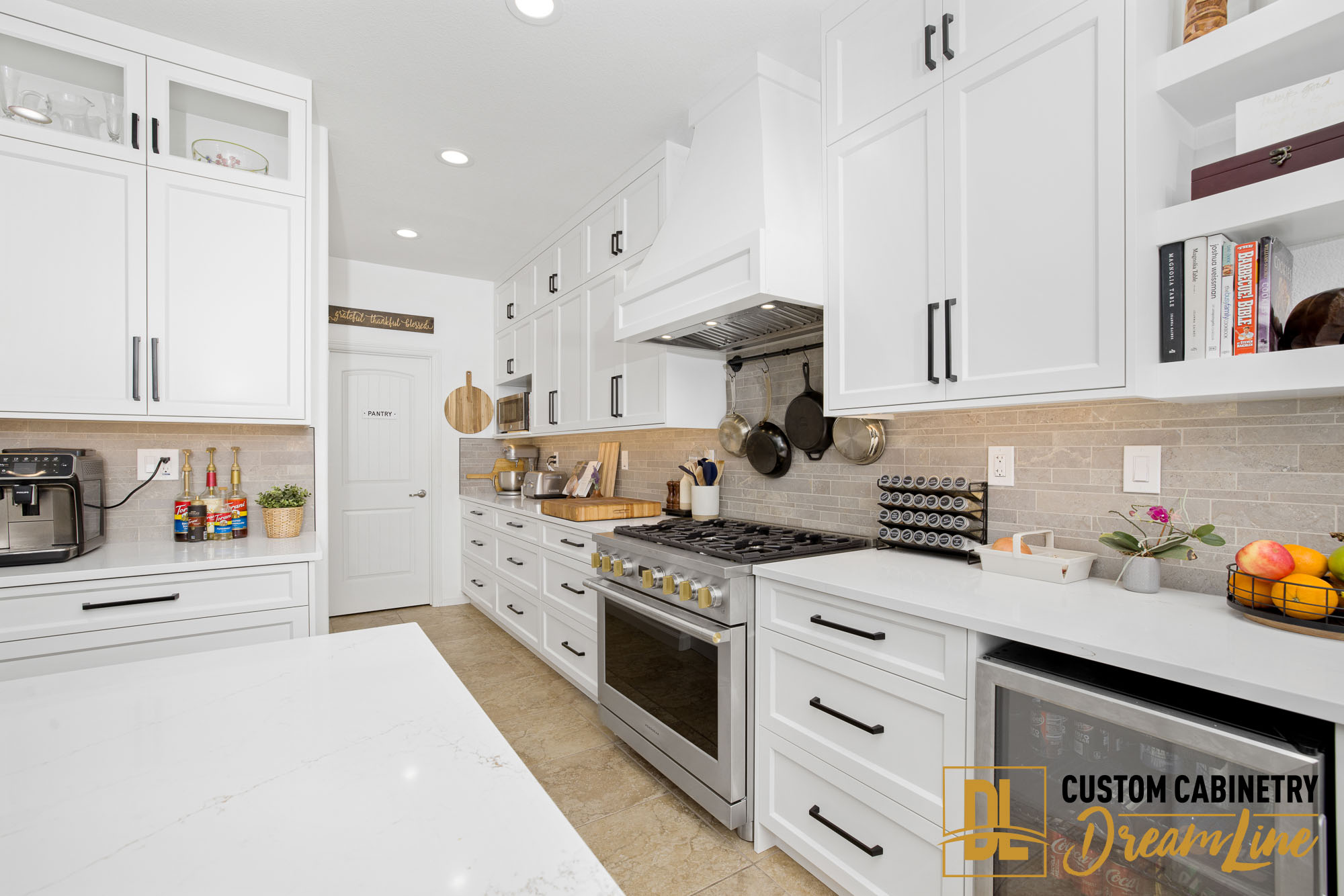 The remodel began with the full demolition of existing cabinets, countertops, sink, and faucet, making way for a fully updated kitchen that preserved the layout while dramatically improving the look and performance of the space. DreamLine brought new life into the room with its Custom Painted Cabinetry System, finished in DreamLine’s Blanco Paint, a crisp, bright white that reflects light beautifully and brings a fresh, airy energy to the kitchen. The Shaker-style Weston doors (MP-242) added the perfect amount of detail — clean, structured, and undeniably classic.