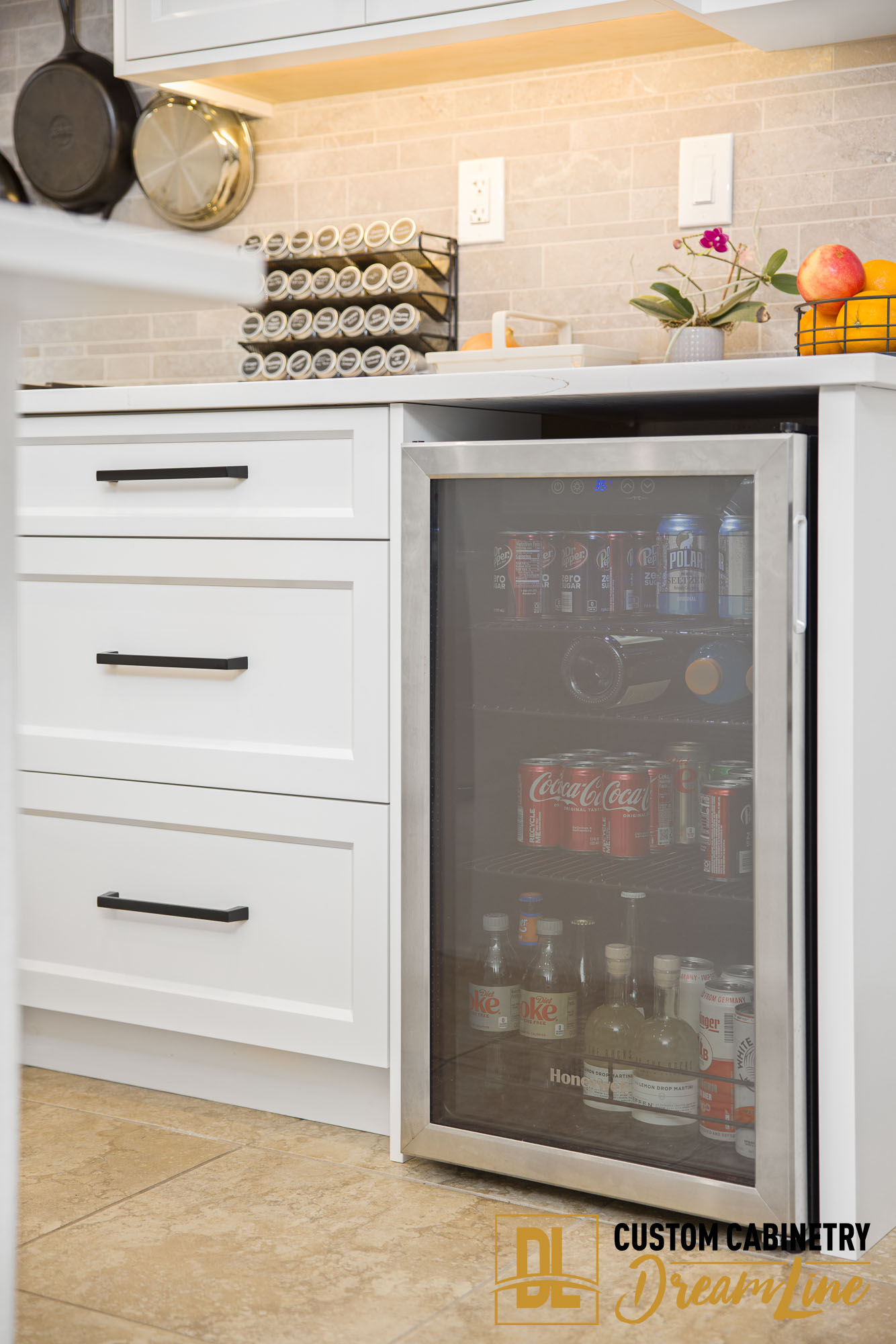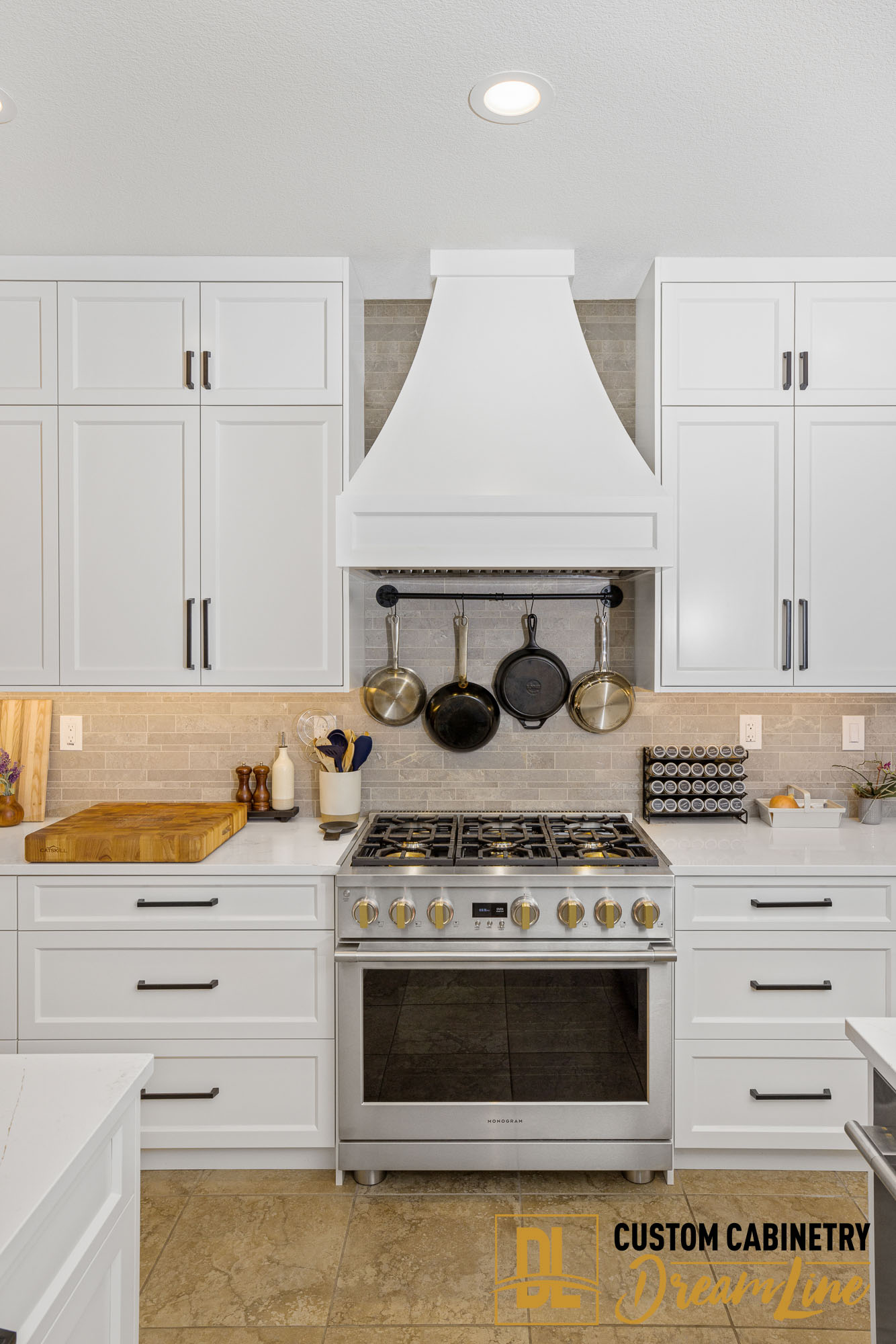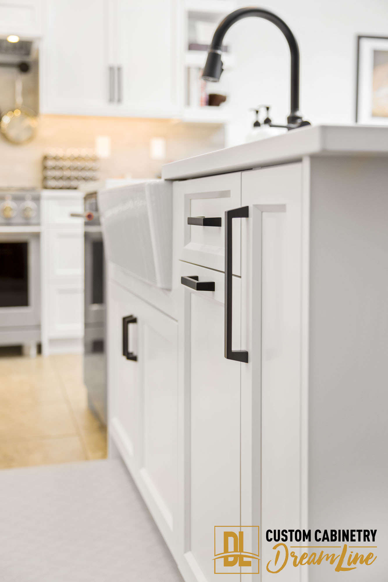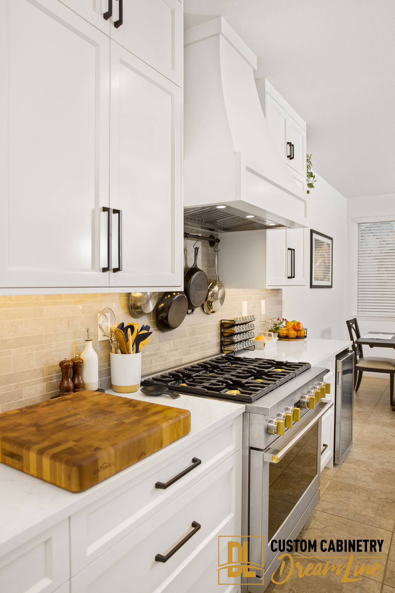 The remodel began with the full demolition of existing cabinets, countertops, sink, and faucet, making way for a fully updated kitchen that preserved the layout while dramatically improving the look and performance of the space. DreamLine brought new life into the room with its Custom Painted Cabinetry System, finished in DreamLine’s Blanco Paint, a crisp, bright white that reflects light beautifully and brings a fresh, airy energy to the kitchen. The Shaker-style Weston doors (MP-242) added the perfect amount of detail — clean, structured, and undeniably classic.