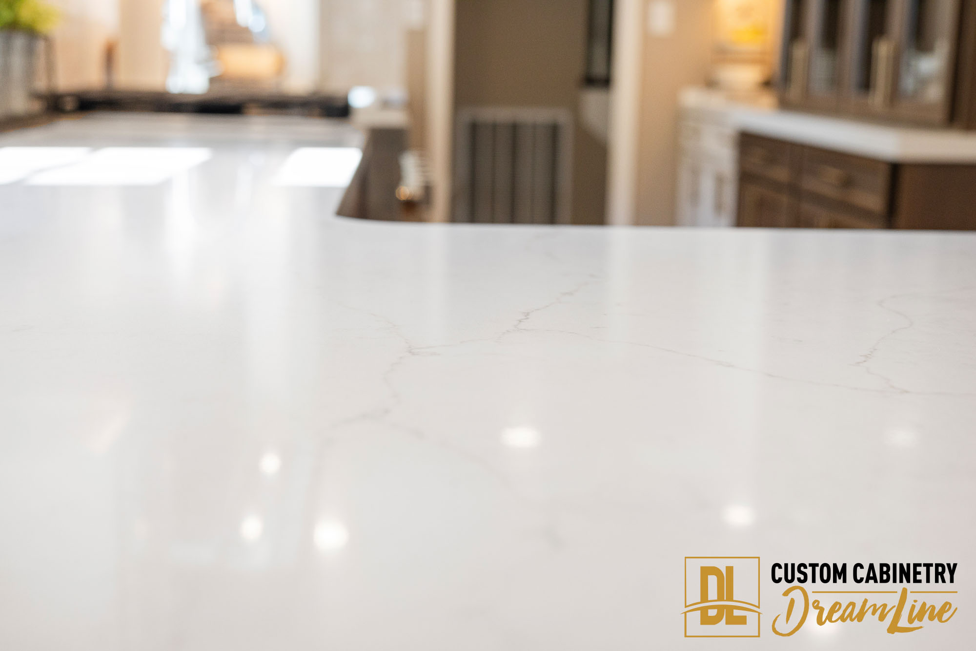 To complement the updated cabinetry, new countertops were installed using Vadara Polished Ostara Dawn 2CM quartz. This luxurious surface features delicate veining and a polished finish that reflects light throughout the space, adding depth and sophistication to the kitchen while providing a durable, easy-to-maintain work surface.
