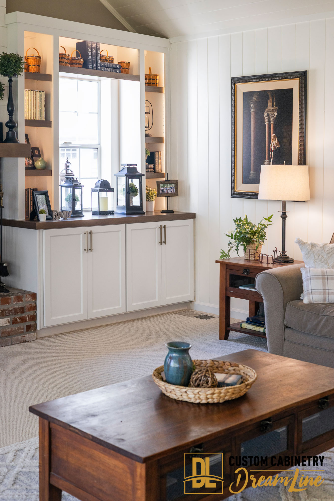 The heart of the transformation was the refacing of the existing cabinetry using the DreamLine SEGUE paint series. This approach allowed the homeowners to achieve a custom look without the need for a full cabinet replacement. The cabinetry was finished in a beautiful combination of DreamLine Carbon Stain Finish WB on Alder and Swiss Coffee White, creating a striking two-tone palette that balances warmth and brightness. Both finishes were crafted in the elegant Artesia door style, giving the cabinetry subtle detail and timeless character.