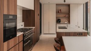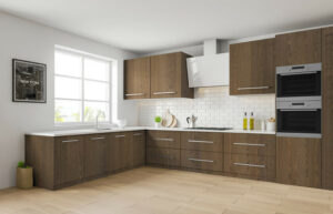 It gives you all the elegance of real walnut, without the inconsistencies or color variation of raw lumber — a balance designers often look for when planning Luxury Kitchen Cabinets: The Secret to a Stunning, Timeless Space.